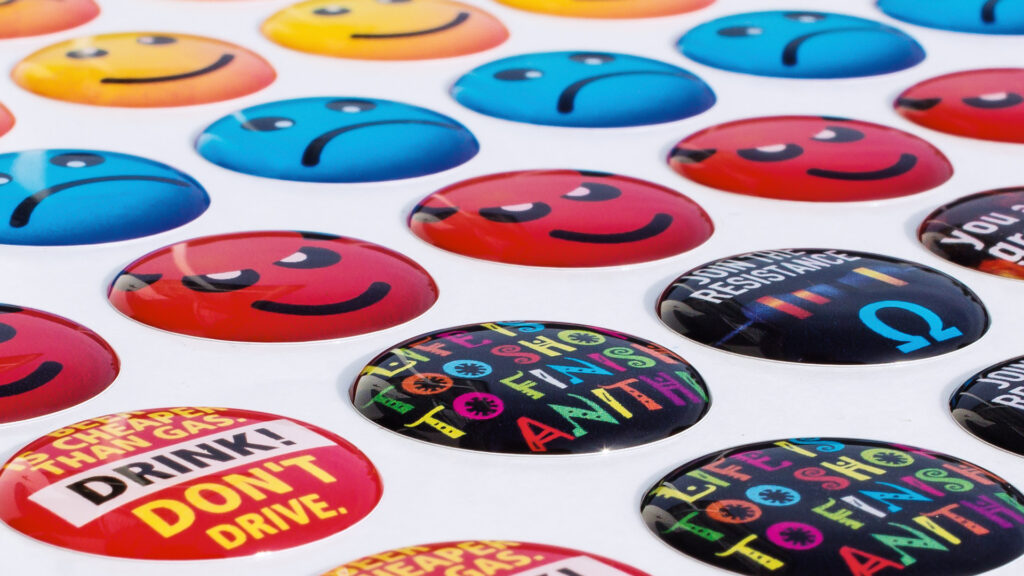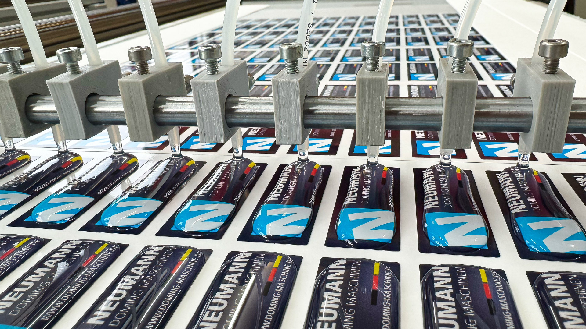 Doming Technik für 2K Polyurethan (PU) und UV Harz gehört zu unseren Stärken. Wir bieten Doming Systeme und Dosieranlagen für die Produktion von 3D-Aufklebern und PU Vergiessung an. Unsere Lösungen bieten wir als einfache, manuelle Dosieranlage für Kleinauflagen oder als automatsierter Doming Roboter für die industrielle Fertigung an.
